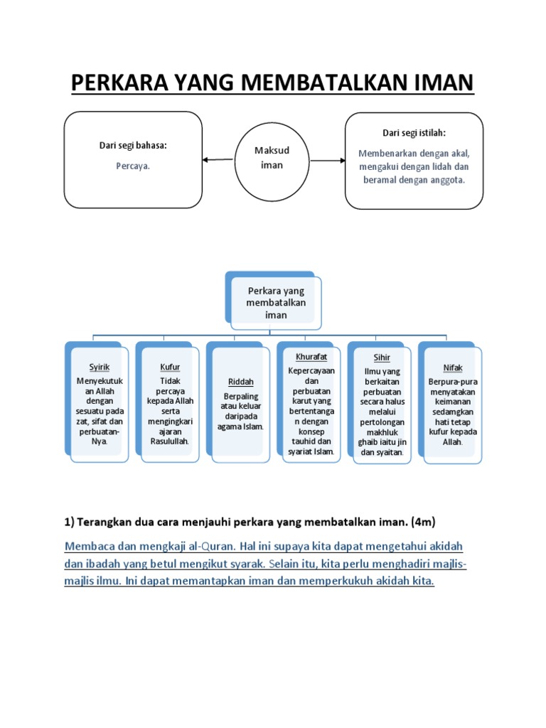 Menyatakan perkara yang membatalkkan iman melalui; Perkara bisa yang membatalkan aqidah kita adalah perkataan, perbuatan, dan iktikad (keyakinan). Pengertian iman bahasa, istilah dan dalil 2. Pembahasan ini disampaikan oleh syaikh prof. 6 perkara yang membatalkan wudhu.